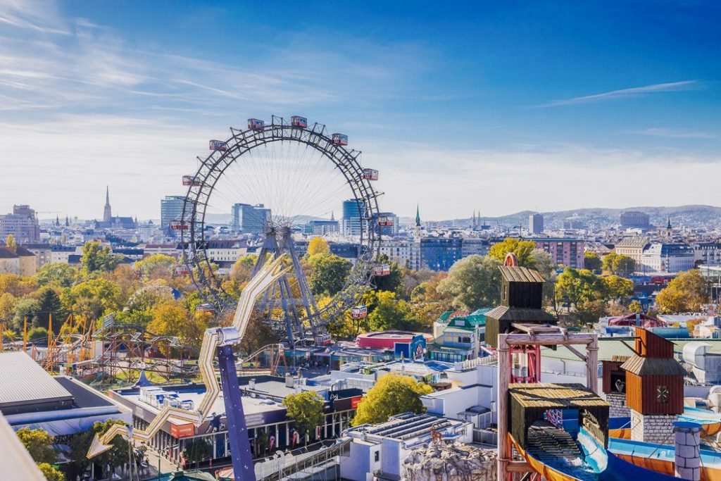 Ich kann ins Riesenrad steigen und die Landschaft genießen.