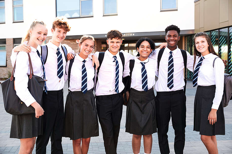 Das war ein Bild mit Schülerinnen und Schülern, die alle gleich angezogen waren.